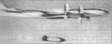 17 марта 1956 г. вышло постановление Совмина, согласно которому ОКБ-156 должно было приступить к переоборудованию Ту-95 в носитель ядерных бомб большой мощности. Эти работы велись в Жуковском с мая по сентябрь, когда Ту-95В был принят заказчиком и передан для проведения летных испытаний. Они велись под руководством п-ка С.М.Куликова до 1959 г., включали сброс макета “супербомбы" и прошли без особых замечаний.