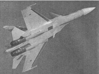 Впервые новый самолет взлетел 2 апреля сего года и совершил более 60 испытательных полетов. От своего предшественника он отличается установкой нового двигателя АЛ-37ФУ с увеличенной до 14000 кгс тягой и системой управления вектором тяги. Этот двигатель оснащен осесимметричным управляемым соплом, способным отклоняться в вертикальной плоскости на величину порядка 20‘ вверх и вниз. “Перелом” реактивной струи происходит в зоне, где температура газов достигает 2100' С, а давление – 7-8 атм. В этих условиях работы шарнирное соединение должно обладать практически абсолютной герметичностью, так как даже малейшая утечка раскаленных газов может мгновенно разрушить конструкцию. По словам Генерального конструктора АООТ “А.Люлька – Сатурн” В.Чепкина, создание подобного двигателя явилось сложнейшей технической задачей, которую удалось успешно разрешить. По заявлению Генерального конструктора М.П.Симонова, в воздушном бою одного Су-37 против 10 Су-27 вероятность победы сторон 50 на 50, а одного Су-37 против одного Су-27 – 100 к 1. Предварительная стоимость нового самолета 40-45 млн. USD.
