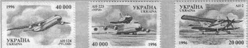 14 сентября Министерством связи Украины выпущены в обращение три почтовые марки, на которых изображены Ан-2, Ан-124 и Ан-225. Несколько ранее появился конверт, посвященный 50-летию АНТК им. О.К.Антонова. Это второй выпуск почтовых миниатюр на авиационную тематику в истории украинской филателии.