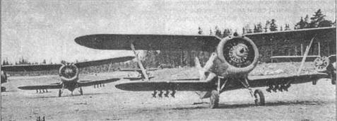 Основными самолетами советской штурмовой авиации накануне войны были И-15бис и И-153. На фото: “Чайки”, вооруженные РС-82, выруливают на старт