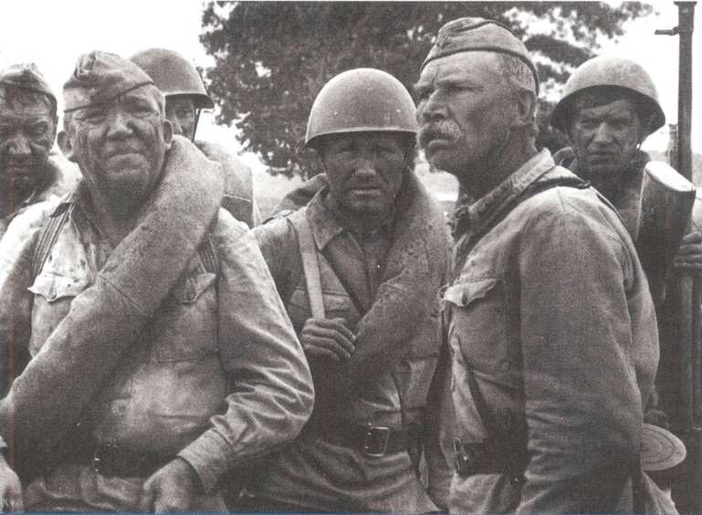 Юрий Никулин, Василий Шукшин, Иван Лапиков, Георгий Бурков в фильме Сергея Бондарчука «Они сражались за Родину» (1975).