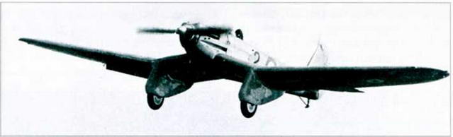 С таким же двигателем, что стоял и на «Спитфайре», «Харрикейн», с его толстым крылом, развивал скорость чуть более 500 км/ч.