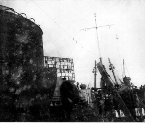 Также на корабле установили два боевых прожектора – один 90-см и один 110-см. Первый располагался на башенке на компасном мостике, а второй – на небольшой площадке с тыльной стороны фальштрубы.