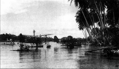 Гидросамолеты-корректировщики тип 0 из состава авиагруппы «Камикава-мару» на гидроаэродроме Попоранг возле стоянки Шортленд