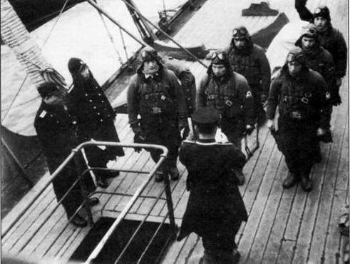 Командир «Кимикава-мару» капитан 1 ранга Усуку Сюити проводит инструктаж экипажей гидросамолётов-разведчиков перед вылетом на разведку острова Кыска, 11 мая 1942 г.