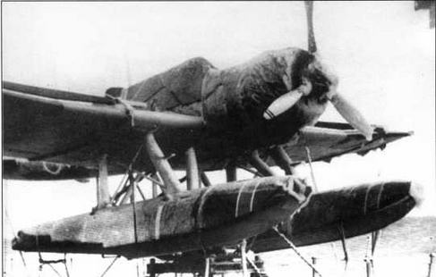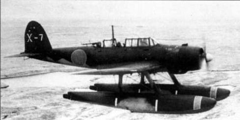 Гидросамолёт-разведчик тип 0, предназначенный для пополнения 452-й авиагруппы авиации флота, на палубе гидроавианосца «Кимикава-мару», северная часть Тихого океана, февраль 1943 г. Хорошо видны цепные талрепы, которыми самолёт принайтовлен к палубе. Для защиты от 20-градусного мороза, ветра и бурных волн капот мотора и фонарь кабины тщательно укрыты плотным брезентом
