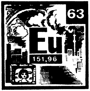 Элемент № 63 не во всем подобен другим редкоземельным элементам. Европий – самый легкий из лантаноидов, его плотность всего 5,245 г/см3. У европия же наибольшие из всех лантаноидов атомный радиус и атомный объем. С этими «аномалиями» свойств элемента № 63 некоторые исследователи связывают и тот факт, что из всех редкоземельных элементов европий – наименее устойчивый к корродирующему действию влажного воздуха и воды.