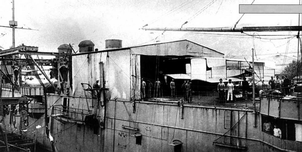 Ангар и площадка для обслуживания самолетов перед ним. Рейд Вильфранша, 1914 г.