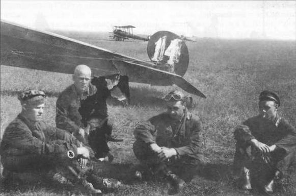 Курсант С.С. Ячменев (второй слева) с инструкторами качинской авиашколы во время полетов на У-1. Осень 1930 г.
