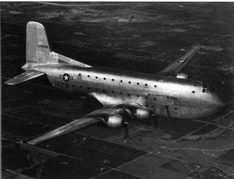 Параллельно с производством С-124А (а всего было построено 204 таких самолета), конструкторы "Дугласа" продолжали совершенствование "Глоубмастера". В частности, в 1951 г. была предпринята попытка оборудовать машину турбовинтовыми двигателями. Такая модификация должна была стать самолетом-заправщиком. Дело в том, что транспортную авиацию пока вполне устраивали машины с поршневыми моторами. А вот заправщики с такими двигателями уже отставали от нужд реактивной боевой авиации. Установка ТВД "Пратт энд Уитни" YT34-P-1 (5600 л.с.) должна была существенно поднять скоростные и высотные характеристики нового варианта "Глоубмастера" II, получившего обозначение YKC-124B ("модель 1182Е"). Однако конкуренты из "Боинга" сработали быстрее – пока велась разработка YKC– 124В, они оперативно доработали свой поршневой КС-97, снабдив его дополнительными ТРД J47 и подняв характеристики машины до приемлемого уровня (подробнее о самолете С/КС-97 – в № 4 нашего журнала за 2013 г.). Поэтому нужда в новом самолете-заправщике отпала, а прототип турбовинтового "Глоубмастера" впервые поднялся в воздух