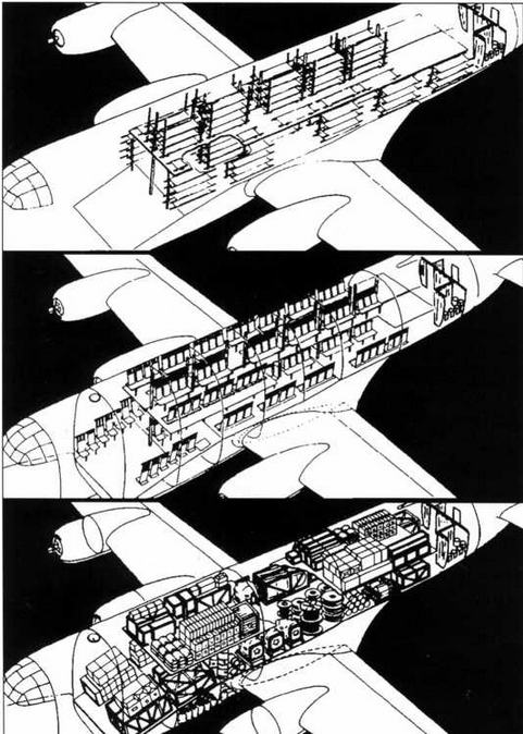 Варианты загрузки С-124 (сверху вниз): 127 раненых; 200 десантников; груз 12 т