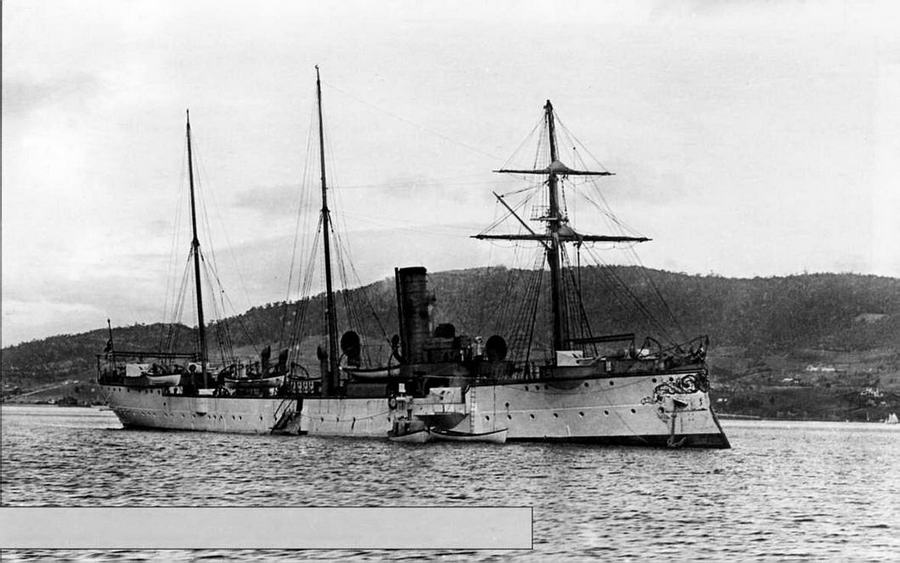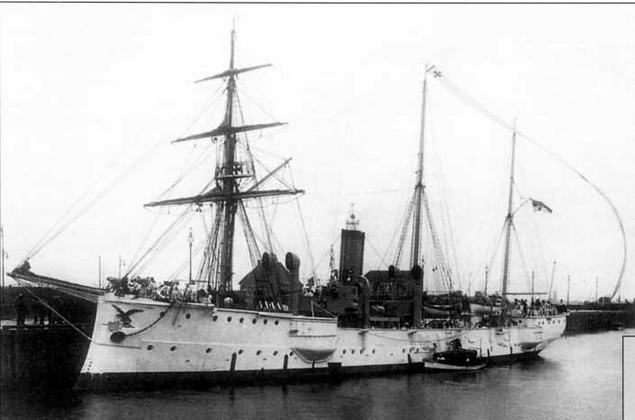 Малый крейсер «Гайер» пере а уходом с верфи в Вильгельмсхафене, осень 1895 г.