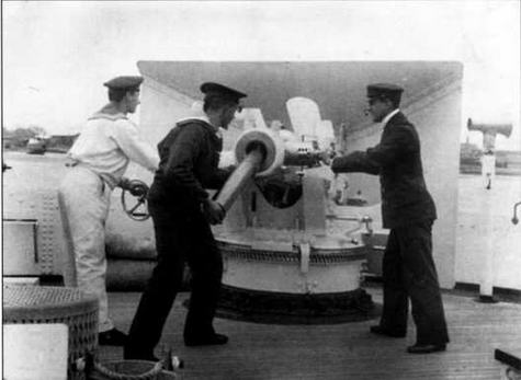 Занятия артиллеристов на однотипном крейсере «Зееадлер»