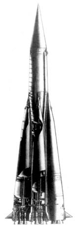 Ряд работ по ракетам, существенно превосходящим «Фау-2», проводился под руководством С.П. Королева в ОКБ-1, входившем в те годы в НИИ-88. В 1946 г. были выполнены проектно-конструкторские проработки по воссозданию немецкого проекта крупногабаритной ракеты А-9. Более глубокий и оригинальный характер имела опытно-конструкторская работа (ОКР) по созданию ракеты Р-3 на дальность 3000 км, доведенная до стадии выпуска эскизного проекта. Ракета диаметром 2,8 м при длине 27 м и стартовом весе 65-70 т оснащалась головной частью весом 3 т, снаряжаемой обычным взрывчатым веществом. При этом, видимо, учитывались и ближайшие перспективы снижения веса ядерных зарядов по сравнению с РДС– ^примененным в первой атомной бомбе, весившей 4,5 т. Уже в 1952 г. при испытаниях на треть более легких бомб РДС-2 и РДС-3 мощность РДС-1 была превышена вдвое.