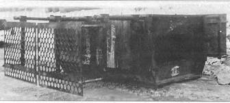 Испытания дырчатого (вверху) и сплошного (внизу) бортовых экранов на макете корпуса танка Т-54.