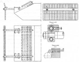 Основными недостатками представленных на испытания в 1948 г. вариантов экранной защиты являлись увеличение габаритов машины, затруднительная перевозка танков по железным дорогам и резкое снижение их маневренности. В определенной степени эти недостатки могли быть устранены при установке на танки съемных экранов, однако это требовало наличие специальных транспортных средств для их перевозки за танками, а также определенного времени для установки экранов на машину перед боем. Для устранения этих недостатков в Военной академии БТ и MB в середине 1950-х гг. была разработана складывающаяся экранная защита.