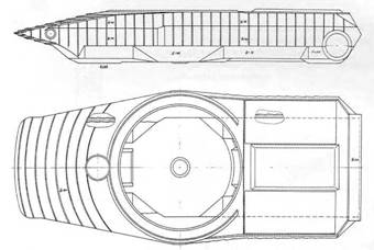 Схема корпуса танка «Объект 772» с конструктивной броней.