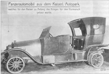 Фотографии изготовленных в 1914 г. для кайзера Вильгельма двух автомобилей «Мерседес» с частичной броневой защитой тиражировались в немецкой прессе. Бронеавтомобилями в полном смысле этого слова их при всем желании назвать нельзя. Надпись на втором снимке (с почтовой карточки) гласит: «Бронеавтомобиль из императорского автопарка, который был построен для императора в начале войны для наступления». История не засвидетельствовала ни использование кайзером этих машин, ни, тем более, его личное участие в каком-либо наступлении.