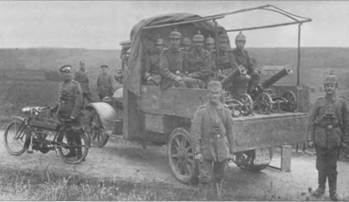 4 августа 1914 г. началось наступление 1-й и 2-й русских армий в Восточной Пруссии, где имелась развитая сеть шоссейных грунтовых дорог, при этом обе стороны широко применяли автомобильный транспорт. Необходимо отметить, что формирование германских автомобильных подразделений структурно отличалось от таковых в Русской Императорской армии. В нашей армии были сформированы отдельные автомобильные роты и штабные автомобильные команды, имеющие в своем составе в основном грузовики средней и малой грузоподъемности, а также легковые машины. Немцы же формировали штабные и этапные автомобильные парки и небольшие по составу этапные автомобильные и амуниционно-автомобильные колонны. В немецких войсковых автоколоннах, предназначенных для снабжения действующей армии, были задействованы главным образом тяжелые тихоходные машины грузоподъемностью 4–5 т, многие из них с прицепными повозками.