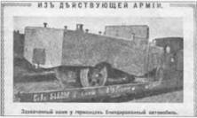 Например, в 1915 г. российскую, а вслед за ней и союзническую прессу облетела фотография «захваченного у немцев блиндированного автомобиля». На самом деле, на снимке был отражен момент эвакуации в тыл пушечного броневика из состава 1-й автомобильной пулеметной роты Русской Императорской армии. Эту машину построили на Ижорском заводе в 1914 г. на шасси немецкого грузовика «Маннесманн– Мулаг» (Mannesmann-MULAG) выпуска 1913 г. С начала ноября 1914 г. она участвовала в непрерывных боях. Вскоре двигатель броневика вышел из строя. 1 декабря 1914 г. командир роты полковник А.Н. Добржанский докладывал: «Большой, сделанный на старой машине, окончательно подорвался». С бронеавтомобиля сняли орудие и отправили его в тыл на ремонт, где и разбронировали. Можно предположить, что репортера, отметившего этот эпизод, ввела в заблуждение немецкая надпись на радиаторе машины, но, скорее всего, в погоне за сенсацией он не побрезговал подлогом.