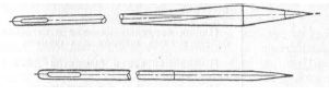 Парусные иглы, крючки, гардаманы. П а р у с н ы е и г л ы – стальные иглы, применяемые для шитья и ремонта вручную изделий из парусины. Они имеют от носка до половины 3-гранную форму, что облегчает прокалывание ткани. При такелажных и парусных работах чаше всего используют стандартные иглы № 2 длиной 70 мм (рис. 7.2).
