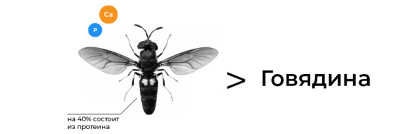 При этом одна личинка южноамериканской мухи «черная львинка» содержит большое количество кальция, фосфора, редких аминокислот и на 40% состоит из протеина, тогда как в говядине в среднем 25—30% белка.