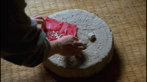 Хон Сансу иронично показывает, как сложно даются корейцам и японцам попытки вести беседу на чужом языке. Из-за того, что герои говорят на ломаном английском, все диалоги крутятся вокруг одних и тех же фраз, дословно повторяемых разными персонажами. Кажется, будто они учили язык по одному и тому же разговорнику. «Why are you here? Business or pleasure?», – спрашивают Мори все, кого он встречает. «I see, I see», – невпопад отвечают собеседники на его истории. Короткие и поверхностные светские беседы не могут удержать внимание зрителя, и через некоторое время из активного слушателя он превращается в активного наблюдателя. Пока на фоне кадра мерно протекает разговор «ни о чем», мы всматриваемся в игру теней, отражение стакана в отполированной поверхности стола, блики света на зеленых боках винной бутылки. В большинстве случаев камера статична, но в каждом фильме встречается несколько сцен с применением фирменного зума – грубого оптического наезда на предмет. Так во время грустного мысленного монолога Мори («Может быть, она [Квон] здесь больше не живет?») камера налетает на тарелку только что съеденного пибимпаба, по стенкам которой размазаны остатки соевой пасты. Посмотрите сюда. Любовь японца к кореянке – не цель, а лишь повод для того, чтобы рассказать историю о действительности. Обед Мори более реален, чем мечты о встрече с Квон, которыми он живет. Более реален, а значит и более значителен.