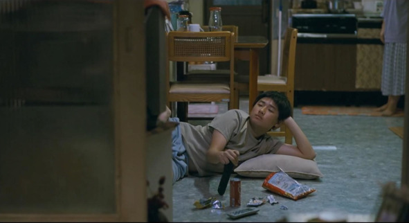 По мере развития событий, когда Миджа с головой погружается в эту историю, проводит собственное расследование, посещая поминальную службу умершей девочки Хиджин, лабораторию, где было совершено преступление и мост, откуда прыгнула Хиджин, в голове главной героини не остается ничего кроме вопросов этики и морали, мыслей о том, где взять деньги и как написать стихи, если привычная красота не несет вдохновения. В этот момент образ ее внука меняется – мы видим сцену, где он уже лежит на полу, вокруг него раскидан мусор, но, уходя в комнату, убирать он его не собирается. В кадре главным оказывается он, ноги героини видны лишь чуть правее поодаль. Извращенный, жуткий и нахальный образ внука занял все пространство. Бабушка заставляет его убрать за собой, сетуя на то, что он «как животное». Становится понятно, что дело здесь совсем не в упаковке от чипсов.