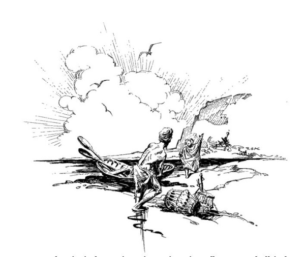 Той ночью, лёжа в мягкой постели, сонливый, довольный и успокоившийся, он смутно подумал, что наутро должен отправиться в город, чтобы завершить миссию, которую его послали исполнить здесь; но когда настало утро, и он поднялся и разделил трапезу с дружелюбным рыбаком, были сети, чтобы их починить и рыба, чтобы её почистить; и когда Бурхан отправился на рыбную ловлю, он не смог совсем бросить дом без присмотра, так что остался полоть и поливать маленький сад, и собирать на берегу плавник, чтобы вечером топить очаг.