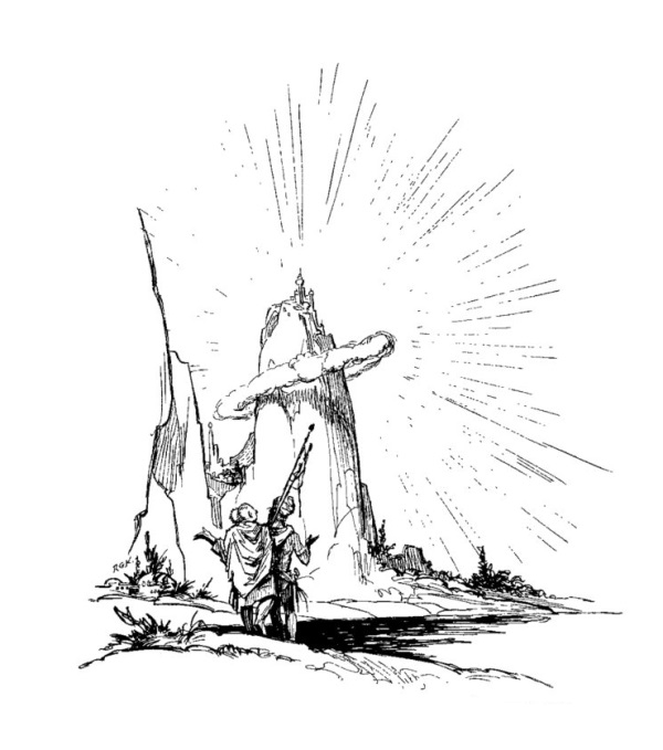 Расстояние было слишком велико, чтобы отчётливо разглядеть внешность этого человека в изменчивом свете и Джал постарался вспомнить, считали ли путешественники, что этих Холмов лучше избегать из-за лютых разбойников или из-за безусловно злонамеренных Троллей и холмовых гоблинов. Несомненно, вы или я, не будучи мечтателями, выбрали бы другой путь, опасаясь повстречать в столь пустынном и дурнопрославленном месте какого-нибудь свирепого разбойника или злобного чародея. Но, будучи юн и отважен, Джал поспешил вперёд.