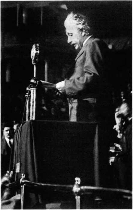 А. Эйнштейн выступает с докладом на тему «Наука и цивилизация» в Лондонском королевском зале искусств и наук имени Альберта. 3 октября 1933 г. РГАКФД