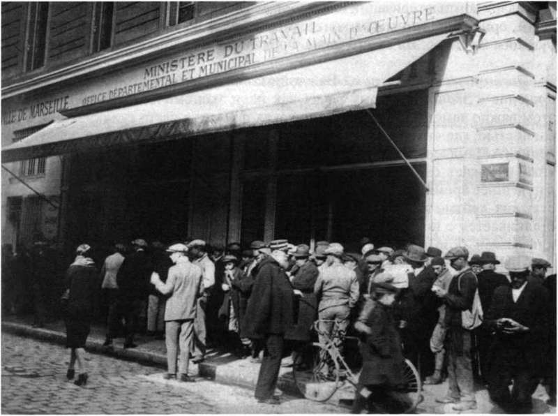 Очередь безработных у биржи труда в Марселе. 1930‑е годы. РГАКФД