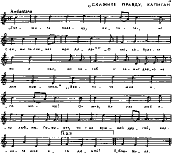 Вообще, неожиданность развязки – характерная черта драматургии англо-американских баллад и песен, так же как особенность их ритма синкопирование (то есть смещение акцента с сильной доли на слабую). Мелодии сплошь и рядом диатоничны, но иногда они меняет свою окраску, становясь то мажорными, то минорными – в зависимости от текста.