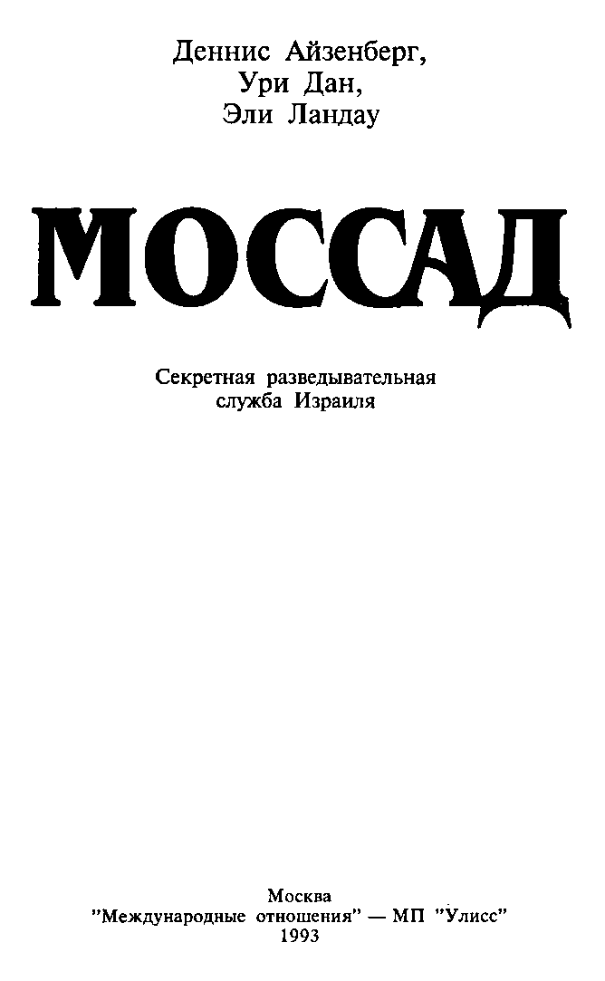 Все события, изложенные в книге, происходили на самом деле. Изменены только имена и фамилии сотрудников Моссад, а также в некоторых случаях детали их биографий. Сделано это по очень простой причине: чтобы не нанести вреда тем сотрудникам израильской разведки, которые еще продолжают свою работу. Однако эти изменения ни в коей мере не привели к искажению сути событий, и в главном все описано так, как было в действительности.