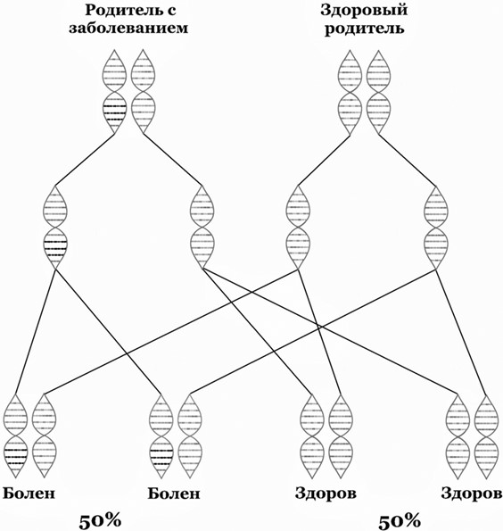 Рис. 1. Наследование аутосомно-доминантного заболевания.