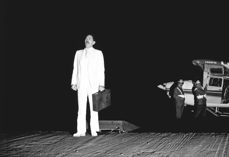 В фильме «Мальчики из Бразилии» доктор Йозеф Менгеле, этот «ангел смерти» (Todesengel) или «белый ангел» (weiße Engle), в своей первой сцене предстает пред нами как настоящее божество. Мы видим Грегори Пека – именно он играет Менгеле – сходящим с борта гидроплана. И несмотря на то что это происходит где-то в Парагвае, глубокой ночью, стоит ему ступить на берег, тьму разрывает свет множества автомобильных фар, который, отразившись от фигуры Менгеле, едва не ослепляет толпу встречающих его приверженцев нацизма (ил. 1.1). Менгеле выглядит великолепно, под стать блестящей наружности и безупречно белые костюм и рубашка, в которые он облачен. И хотя дизайнер костюмов Энтони Мендельсон, по-видимому, подразумевал те прозвища, которые приросли к имени доктора Менгеле в то время, когда он проводил свои эксперименты в концлагерях, столь нарочитая демонстрация сарториальной щепетильности может рассматриваться как признак поливалентности, постоянно присущей кинематографическому белому костюму. На фундаментальном уровне появление на экране злодея в белом подрывает условные кинематографические нормы, согласно которым белый цвет символизирует добро, а черный зло – так повелось со времен пионеров немого кино, режиссеров первых вестернов, где хорошие парни в белых ковбойских шляпах противостояли плохим парням в черных шляпах, и это цветовое разделение помогало зрителю прочитывать сюжет без лишних пояснений. Контраст между ослепительной внешностью и скрытой за ней моральной мерзостью, несомненно, придает персонажу особую привлекательность; как заметил Ж. Бодрийяр, «все метаморфизируется в свою противоположность, чтобы пережить себя в откорректированной форме. Все органы власти, все институты говорят о себе через отрицание, стараясь через симуляцию смерти избежать своей реальной агонии»[36]36