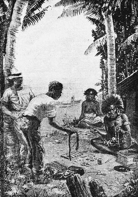 Мне пришлось в первый раз попасть на эти острова, когда отвозили туда местных жителей, работавших на сахарных плантациях в Квинслэнде. У нас на борту было двести человек, которые представляли собою разношерстную толпу, одетую в яркие одежды и нагруженную ящиками с табаком, дешевым платьем, ожерельями из бус, цветной бумагой и разными мелочами, на которые они истратила свои годовые сбережения.