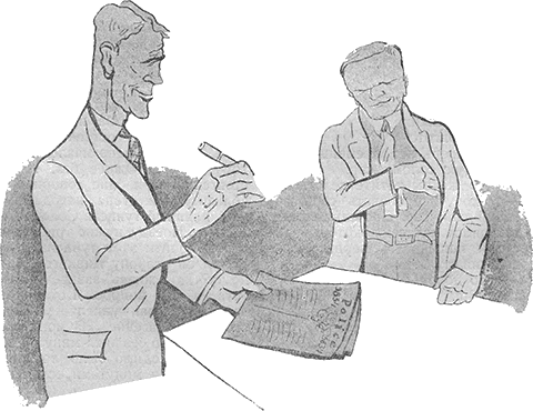 Мне не нужно было двух минут, чтобы прочитать все это. Когда я поднял глаза, я увидел, что мой американский спутник улыбается мне доброй улыбкой дядюшки. Револьвер исчез. Он ждал с пером в руке, чтобы заполнить бланк для страхового общества.