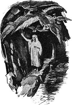 Вокруг, с глухим клекотом, летали зубастые птицы. Девочка бросала птицам куски мяса, и они, схватывая его, взлетали к потолку, ударяясь крыльями в каменные своды.