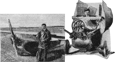 Небольшой одноместный аэроплан с мотором малой мощности в несколько минут может быть превращен в автомобиль: для этого надо только снять крылья, привесить их сбоку корпуса и переключить мотор на привод к передним колесам. Аппарат этот весит ни больше 300 кило и может развить в воздухе скорость до 150 километров в час.