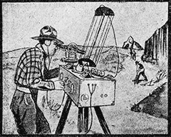 Дело в том, что радиоволны отражаются тяжелыми рудами, содержащими в себе металлы, вроде того, как зеркало отражает луч света. На этом свойстве радио-волн и построен прибор, изображенный на рисунке. Для применения этого нового способа нужно два таких аппарата. Один из них производит и посылает радио-волны при помощи особой антенны по одному определенному направлению. Другой прибор служит для улавливания этих волн. Оба аппарата устанавливаются по краям исследуемого участка, затем на него направляют радио-лучи и отмечают – от какого места радио-волны будут лучше всего отражаться. В этом месте тогда и начинают рыть пробный колодезь, уже уверенные найти там рудоносную залежь.