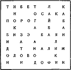Горизонтальных: 1. Плод, 3. Суррогат сена, 5. город СССР (Яросл. губернии), 7. Предложение, 9. Часть цирка, 11. Торговое учреждение, 13. Озеро в персидском Азербейджане, 15. Рыба, 16. Раскапываемый город, 17. Южные овощи, 18. Повреждение, 20. Штат С.А.С.Ш., 22. Неизвестное, 25. Мешок, 27. Видение, 28. Гора, 30. Остов, 31. Лодка, 32. Рогатое животное, 33. Рабочие животные, 34. Созвездие, 35. Злой дух, 37. Продукт обработки древесного сока, 40. Река в Азии, 42. Английский учебный центр, 43. Мелкий грызун, 45. Бог войны, 46. С.-хоз. орудие, 49. Покров, 51. Низменность, 53. Род стихов, 55. Португальская колония, 56. Опора, 57. Имя, 58. Причина замерзания, 59. Запах, 60. Птица, 61. Кухонная принадлежность.
