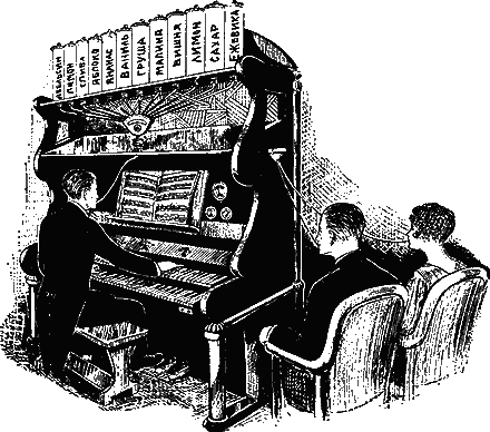 Еще более любопытная мысль создания «вкусового пианино» – недавно будто-бы осуществлена одним молодым французским изобретателем. Заимствуем рисунок из июльского номера журнала «Science and Jnvention»[46]46