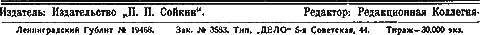 Авторам. – Рукописи, присылаемые в Редакцию, должны быть написаны четко и снабжены полной подписью и адресом автора. Переводчиков просим прилагать оригиналы. Рукописи без обозначения условий оплачиваются по усмотрению Редакции. Переписка по поводу рукописей для Редакции не обязательна. На обратную пересылку рукописей необходимо прилагать марки.