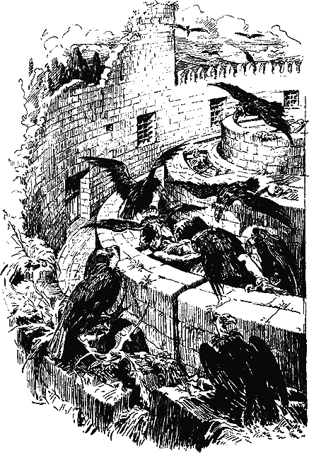 В черном клубке отвратительных птиц долгие минуты продолжалась борьба. Взмахивали крылья, высоко поднимались тучи пыли…