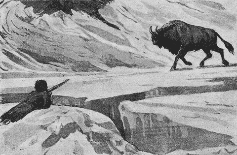 Через несколько мгновений, едва он успел вскинуть ружье к плечу, как в шагах шестидесяти от него на легком бегу появился круторогий красавец. Раздался выстрел. Самка ринулась в сторону, а самец пал на передние колена, попытался вскочить и с жалобным блеянием конвульсивно задергался, обагряя лед кровью.