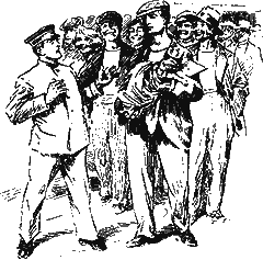 При выходе, как и у нас здесь, у ворот фабрики рабочих обыскивают. Обыскивающий сторож очень обрадовался, нащупав у Джемса за пазухой большой пакет.