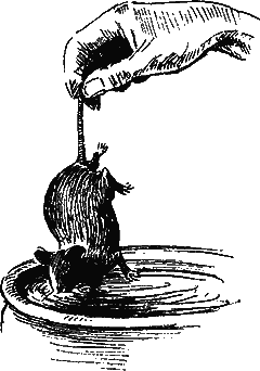 Около вулканизационной печи стоял Джемс и занимался чрезвычайно странным делом. Перед ним был стакан с жидкостью для холодной вулканизации, в которую он, с необыкновенно серьезным видом, погружал живую мышь, держа ее за конец хвоста. Повидимому, мыши не очень нравилась хитрая операция. Она чихала, разевала рот и извивалась как угорь, положенный живьем на сковороду.