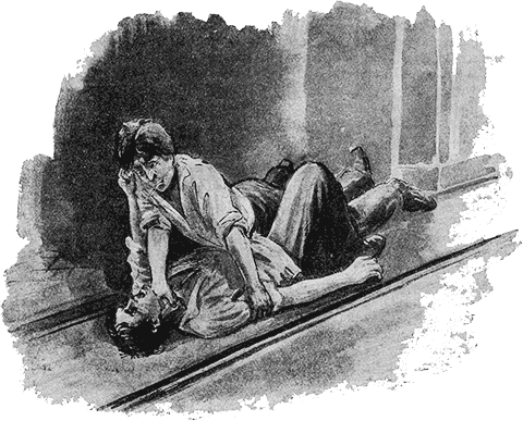 Момент – и я бросился к нему под ноги. Он тяжело рухнул на пол, споткнувшись о меня, но в ту же секунду оправился. Но и я уже был на ногах. С рычанием, как звери, мы кинулись друг на друга и около раскаленной печи завязался отчаянный бой.