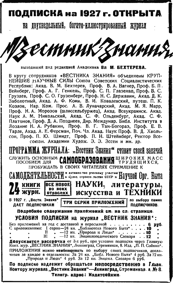 5. Последний срок представления рассказов на конкурс – 1-е Марта 1927 г. Авторы из дальних местностей должны сдать на почту свои произведения во всяком случае не позднее этого числа. Почтовый штемпель будет служить доказательством времени отправки.